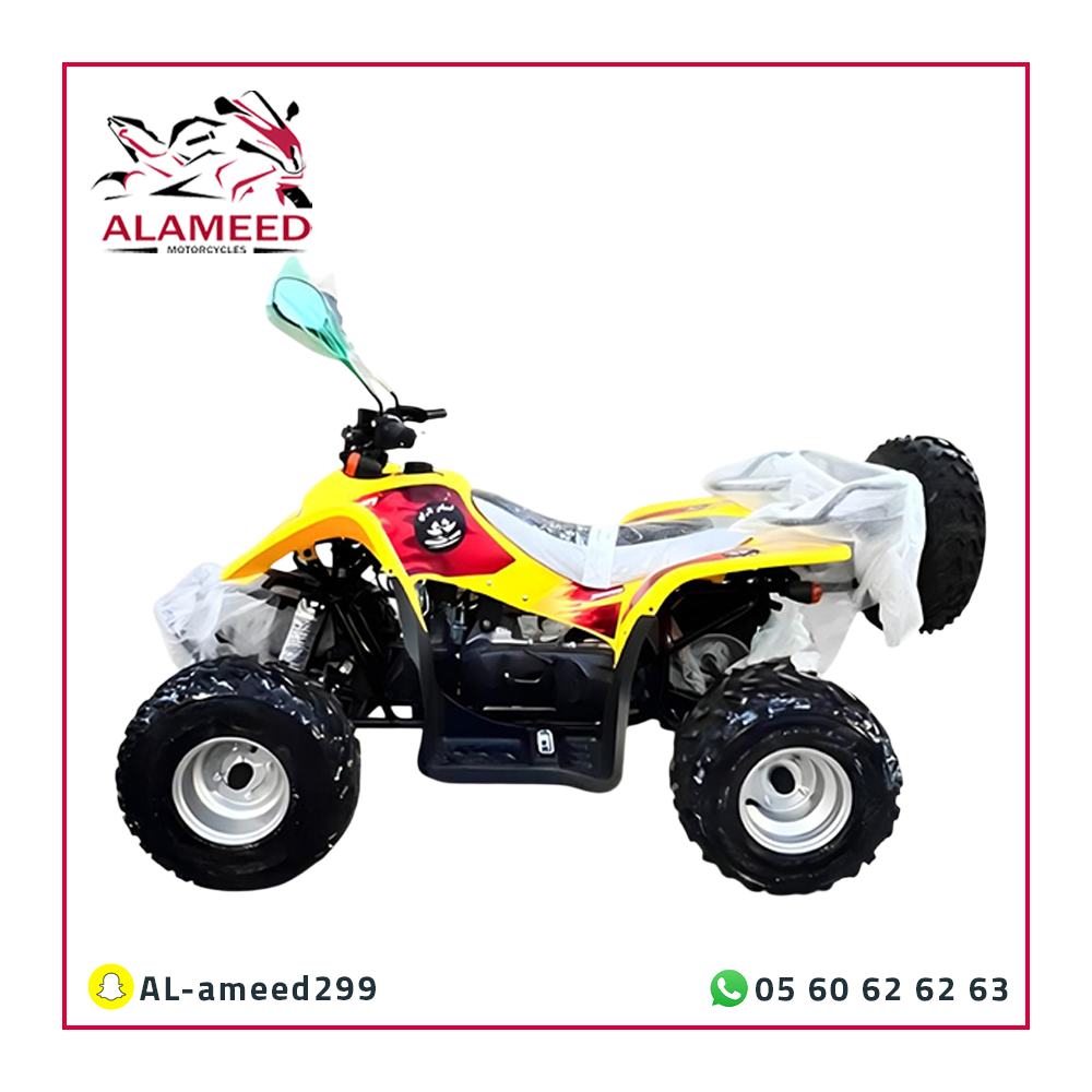 محرك بسعة 110cc، صناعة تايوانية، 1 سلندر، تشغيل سلف وهندل، فرامل أمامية وخلفية، شمعة أمامية، عزم ممتاز، ثبات على الطريق، سرعة 60 كم/ساعة، دعامات أمامية وخلفية.