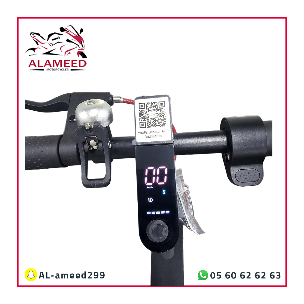 يمكنك التحكم الكامل في السكوتر من خلال تطبيق YouFs-A! ببساطة، قم بتحميل التطبيق واربِط السكوتر به للتحكم في تشغيله وإطفائه، تبديل السرعات، حساب المسافة المقطوعة، والعديد من الوظائف الأخرى بكل سهولة.