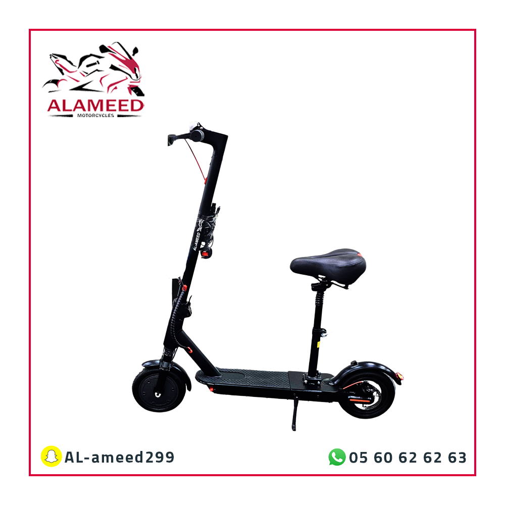 يأتي السكوتر بكرسي مريح ومبطن، قابل للطي أو الإزالة، مع إمكانية تعديل الارتفاع ليناسب جميع المستخدمين.